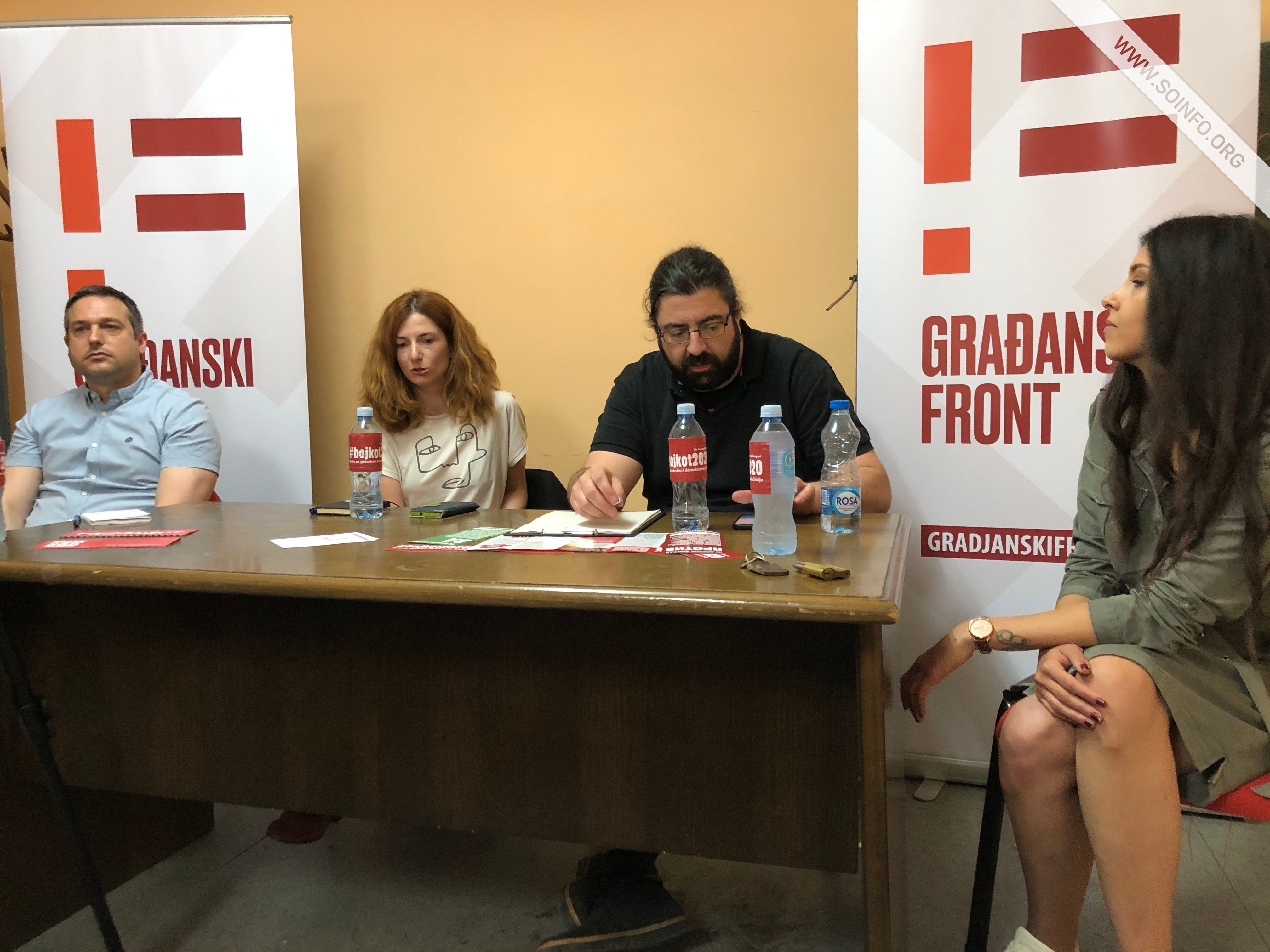 Robert Kozma, generalni sekretar Građanskog fronta, inače član beogradske inicijative koja je delovanje počela prepoznatljivom „žutom patkicom” se nadovezao, da su tokom i nakon izbornog procesa u Beogradu uputitili brojne prigovore, koji su se uglavnom odnosili na lica sa spiskovima ispred biračkih mesta, a na koje niko od odgovornih nije reagovao. Naglasio je da od tada ne postoji kontrola izbornog procesa i da niko ne veruje u nezavisnost Republičke izborne komisije. Kozma smatra da ne postoji čak ni minimum ravnopravnosti u izbornom procesu, da je naša vlast u neprestanoj kampanji i da nenamenski troše velike količine javnog novca. - Upravo tu dolazimo do pojma diktature jer smo onemogućeni da slobodno izrazimo svoje mišljenje i ukažemo na nezadovoljstvo, a da zbog toga ne budemo izloženi nekoj vrsti nasilja. Stvari moramo nazvati pravim imenom. Nismo demokratija već hibridni režim, Nemamo fer i ravnopravne već lažirane izbore. Znači, bojkotovati ove izbore - rekao je Kozma.